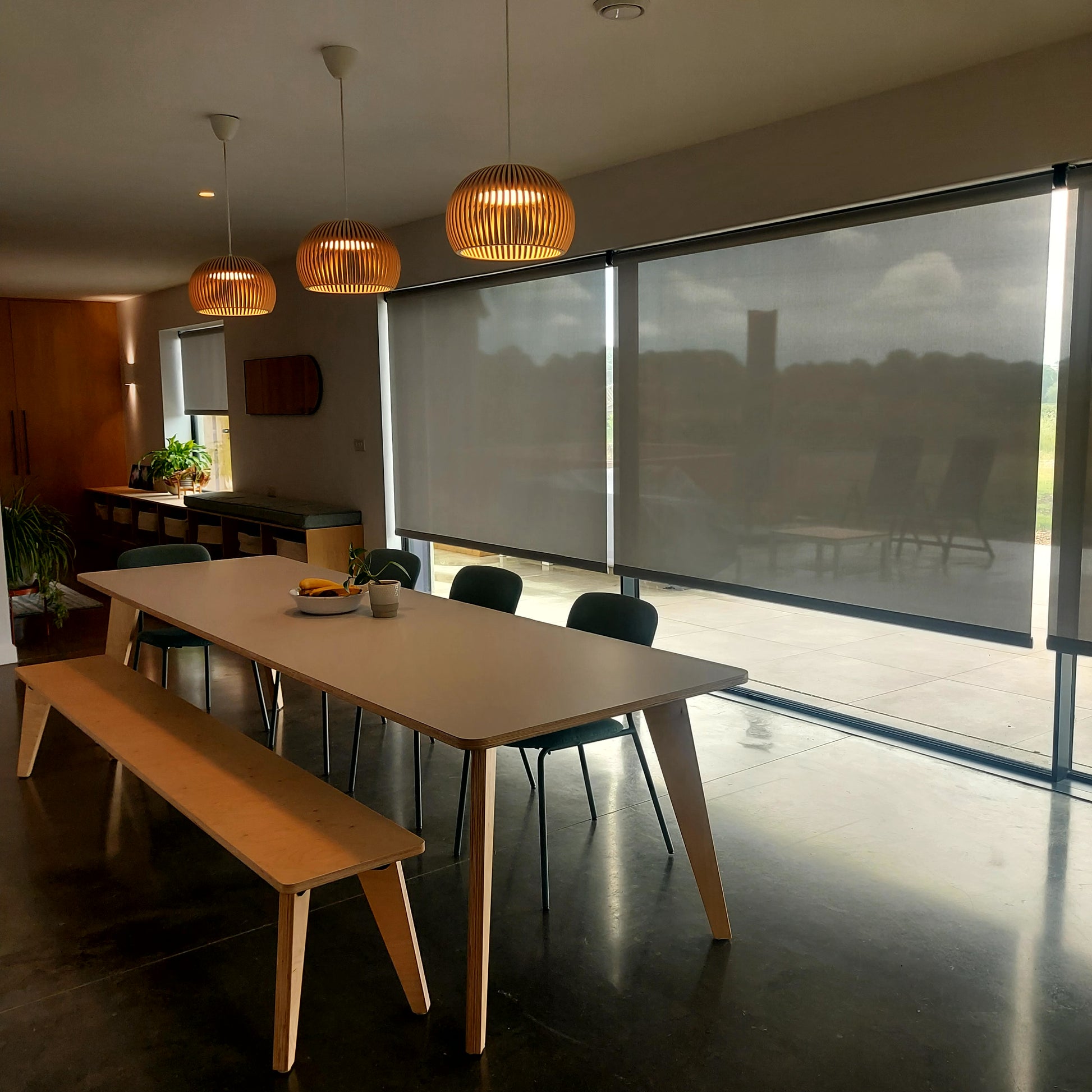 These solar blinds are timeless and perfect to enhance the look and feel of your home. Advances in technical fabrics make our roller blinds a high-performance solution for shading, building energy management, privacy & security.